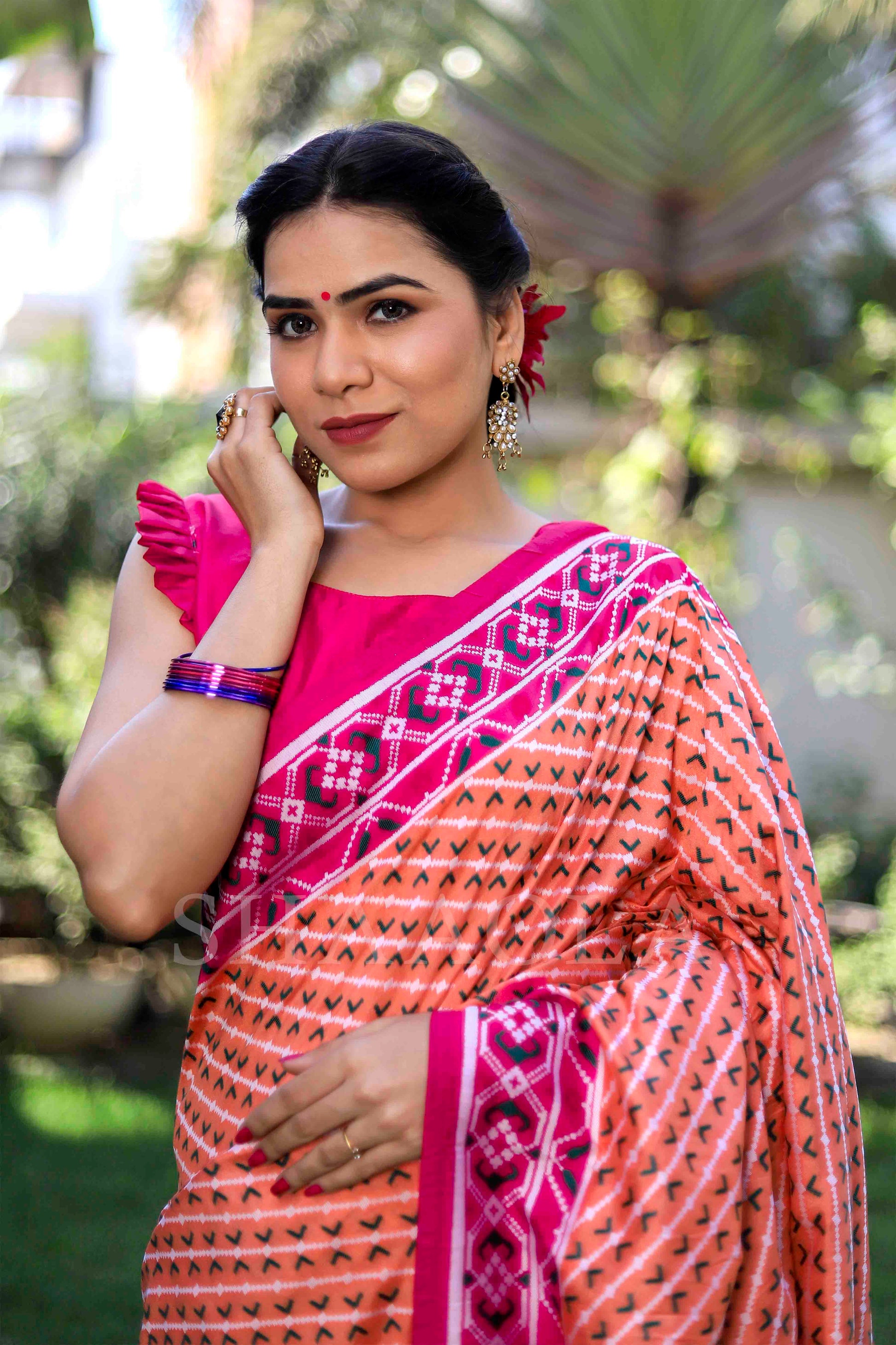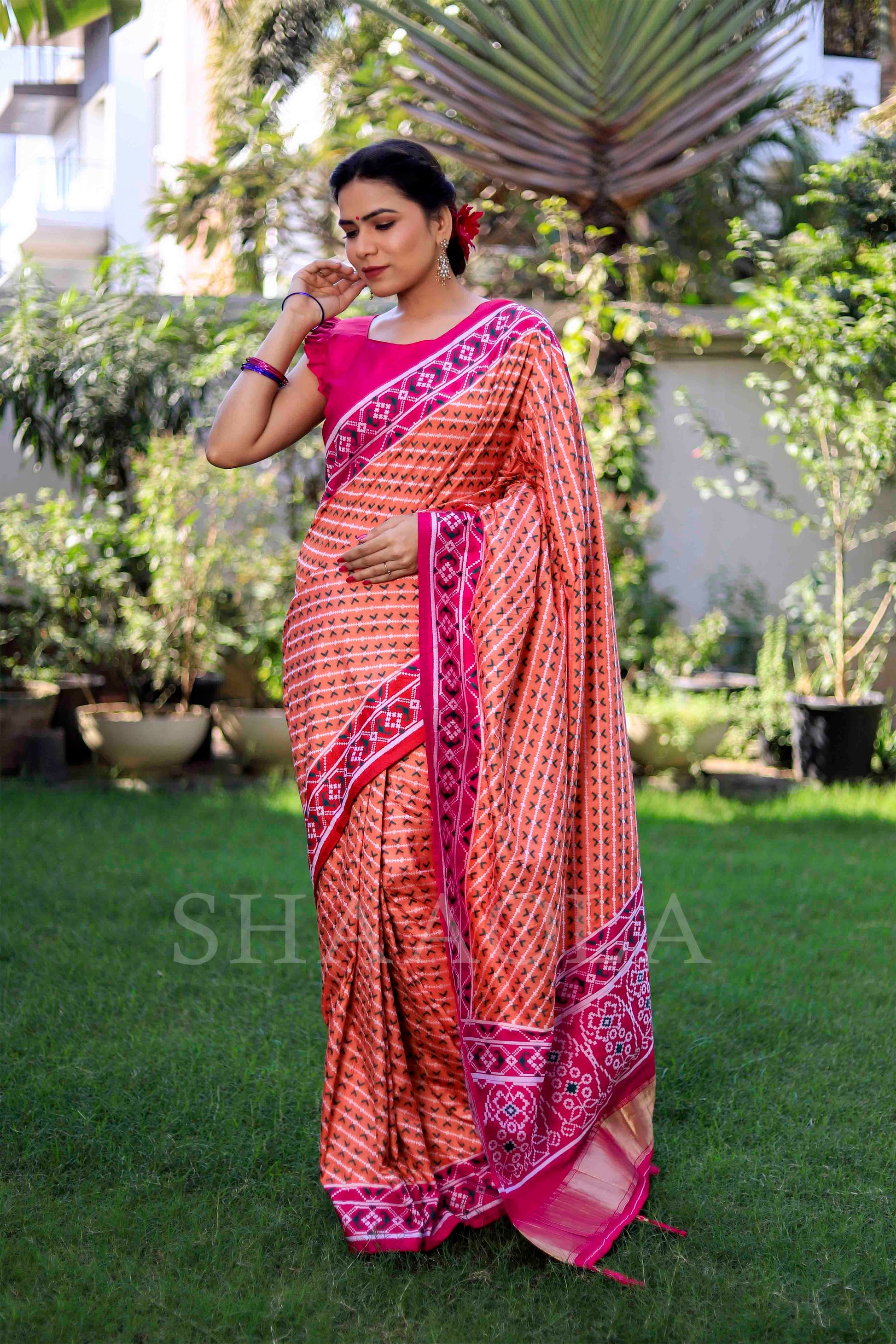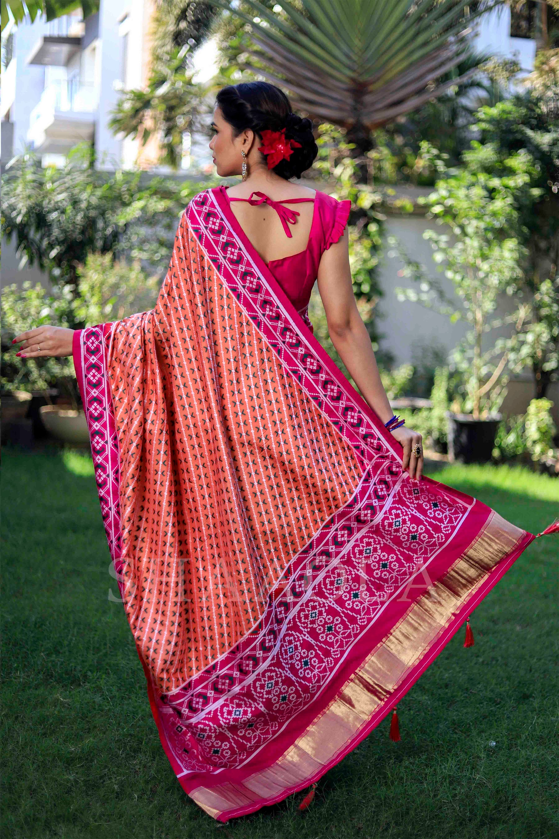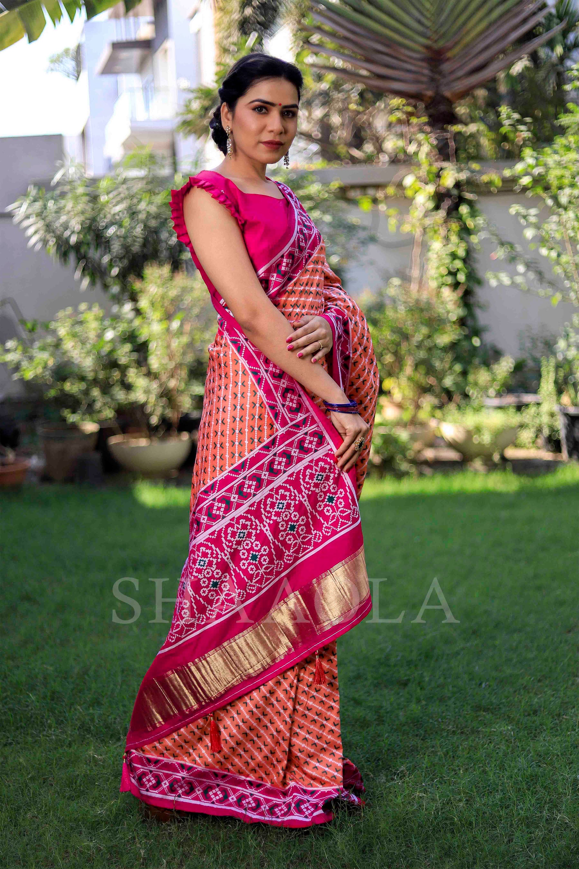 Magenta Pink And Orange Woven Patola Dola Silk Saree