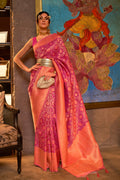 A royal pick for your best occasions, here comes our Kanjivaram silk saree collection from South India. This sparkling piece comes in shades of blue. Known for its rich design and distinguished border, it speaks tales of the rich heritage and craftsmanship involved.