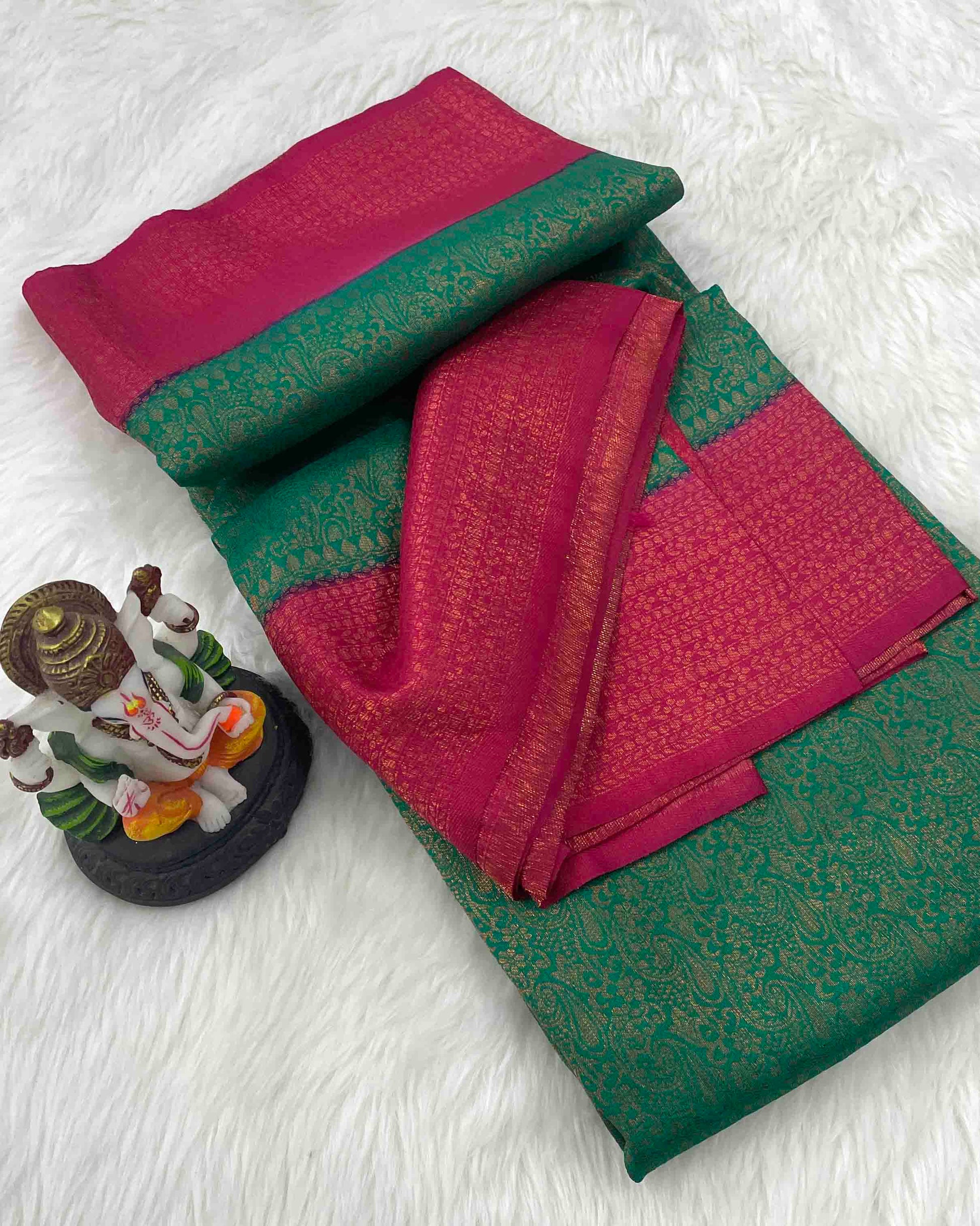Green Pink Soft Pattu Silk Saree
