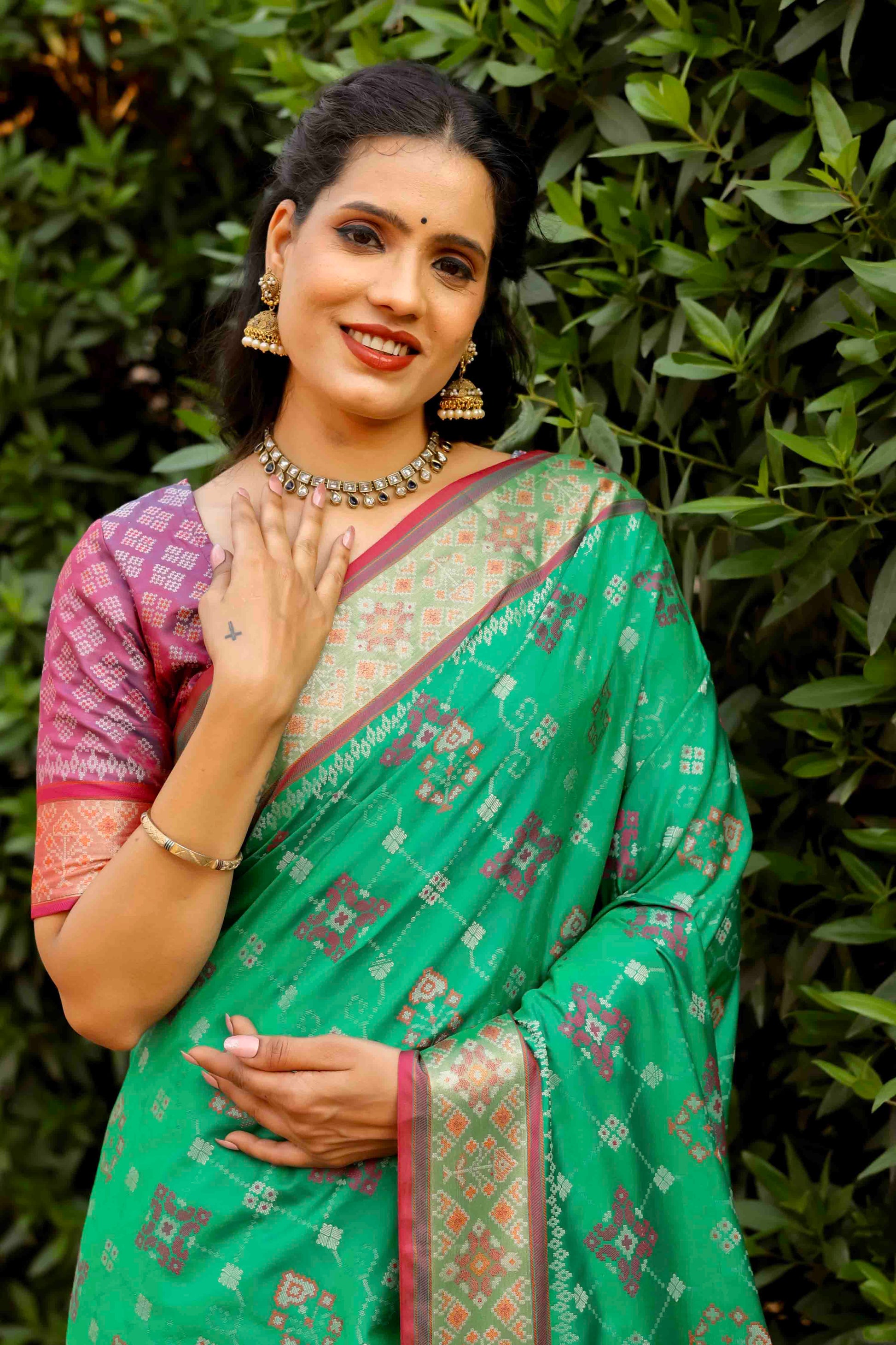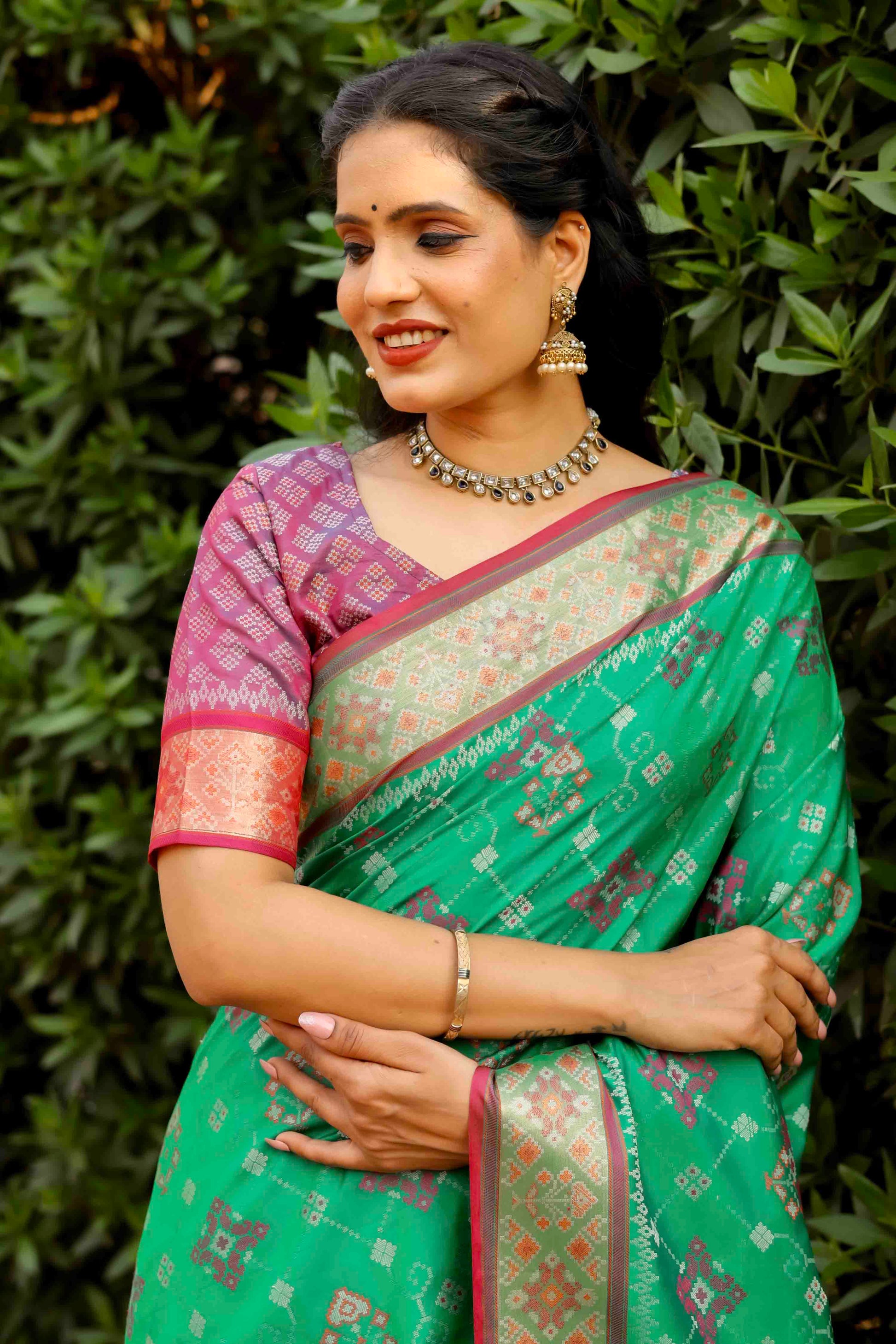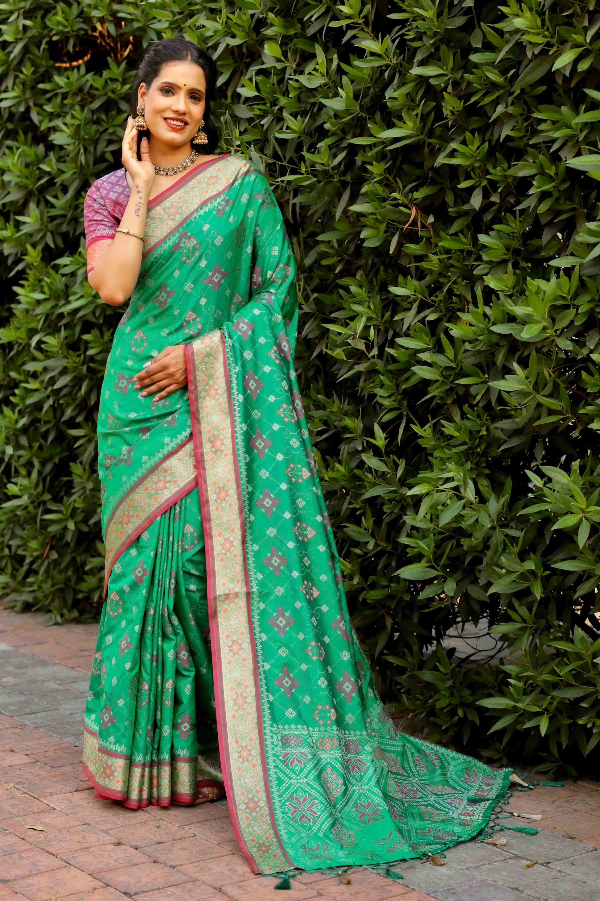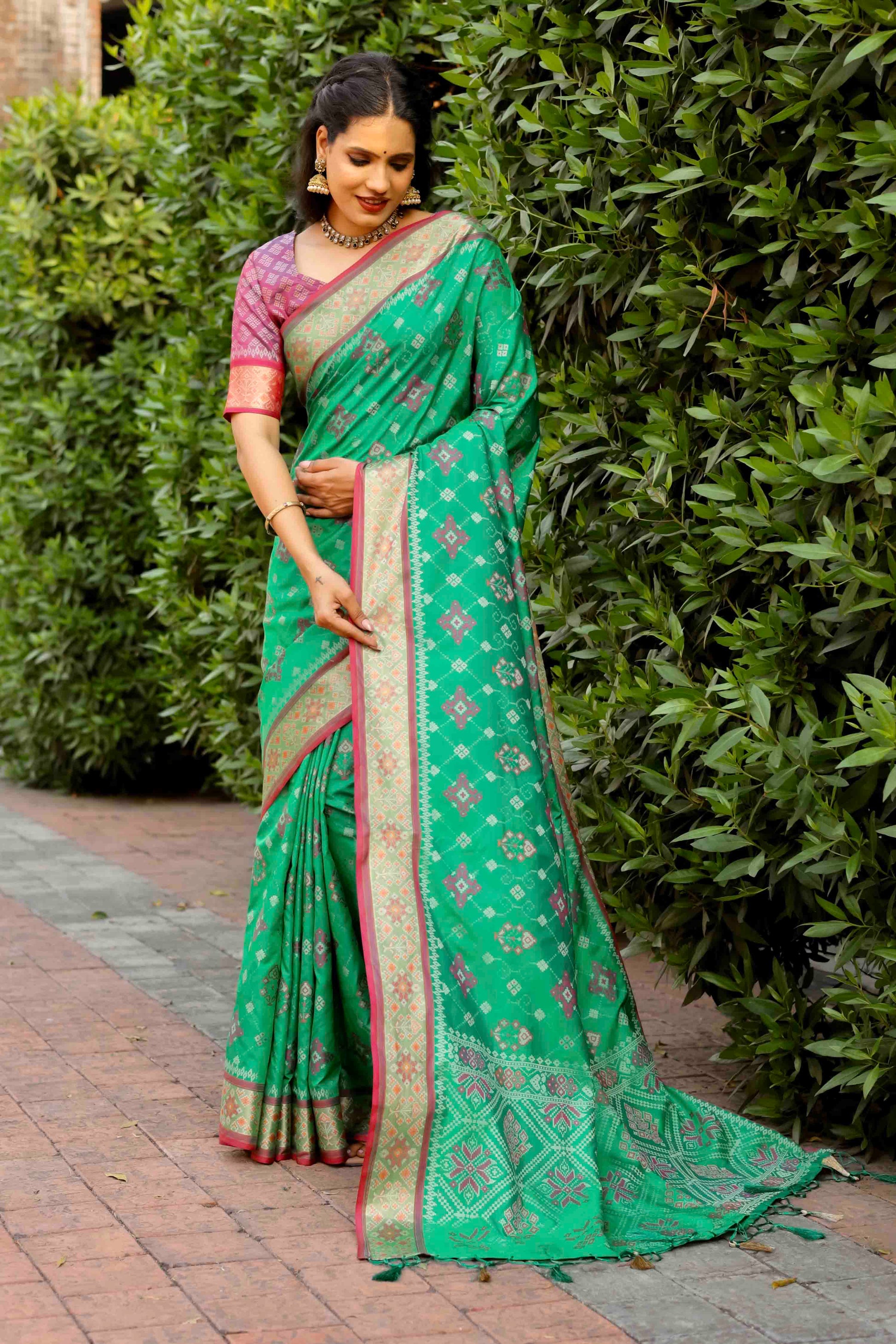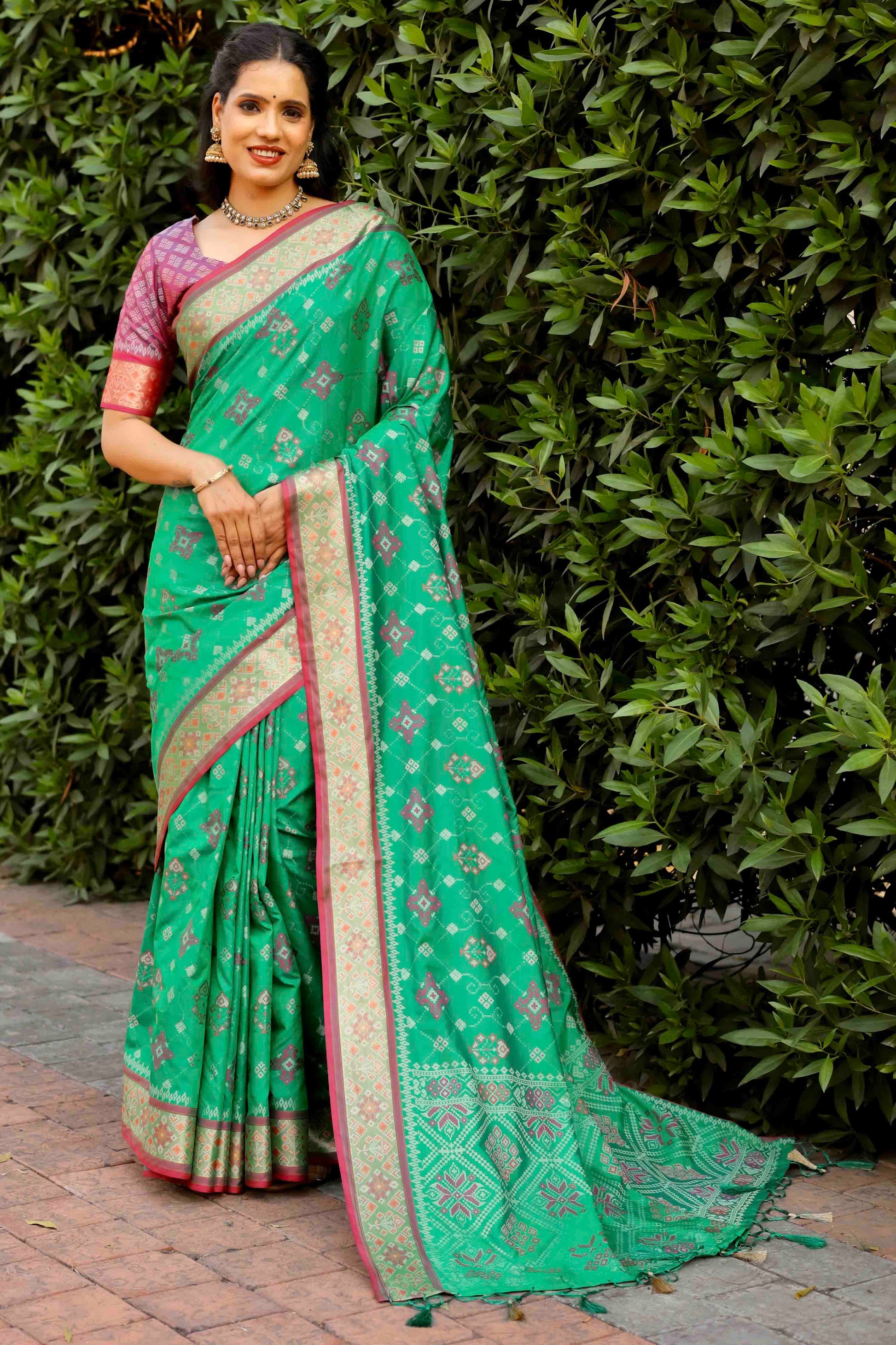 Mint Green Woven Patola Silk Saree