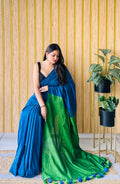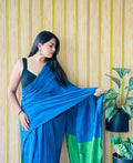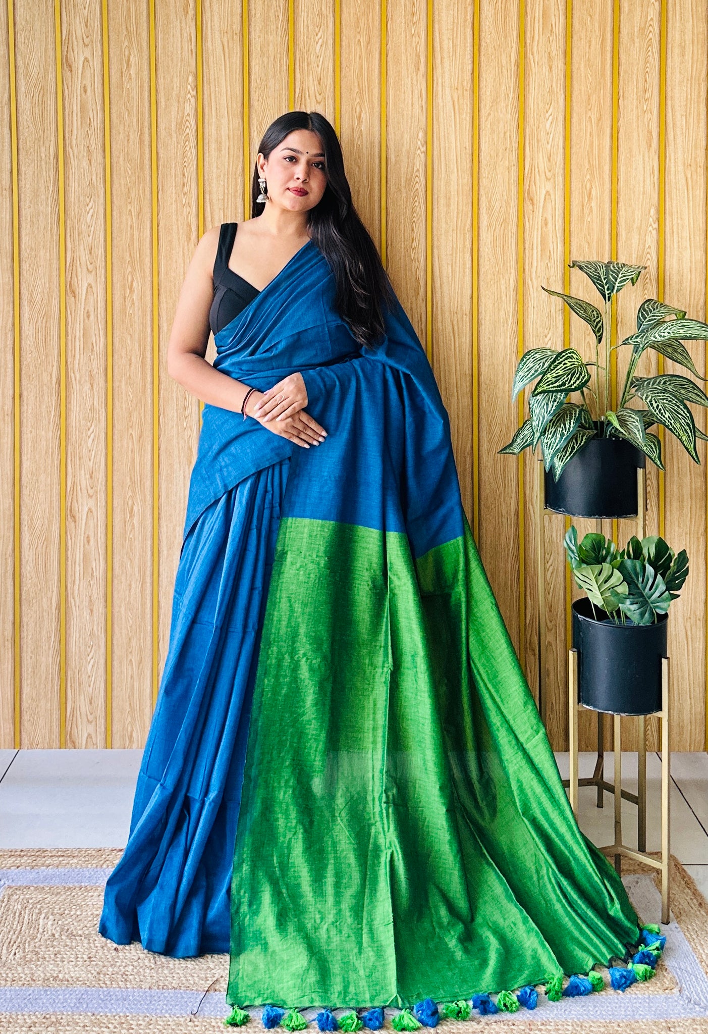 Royal Blue & Parrot Green Handloom Cotton Saree