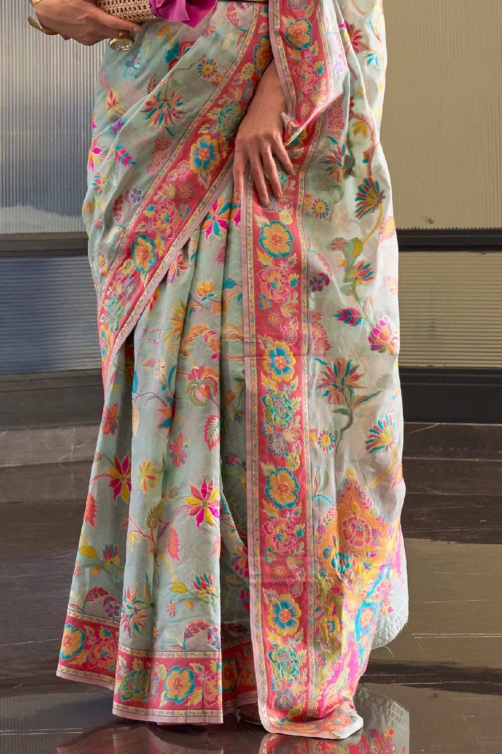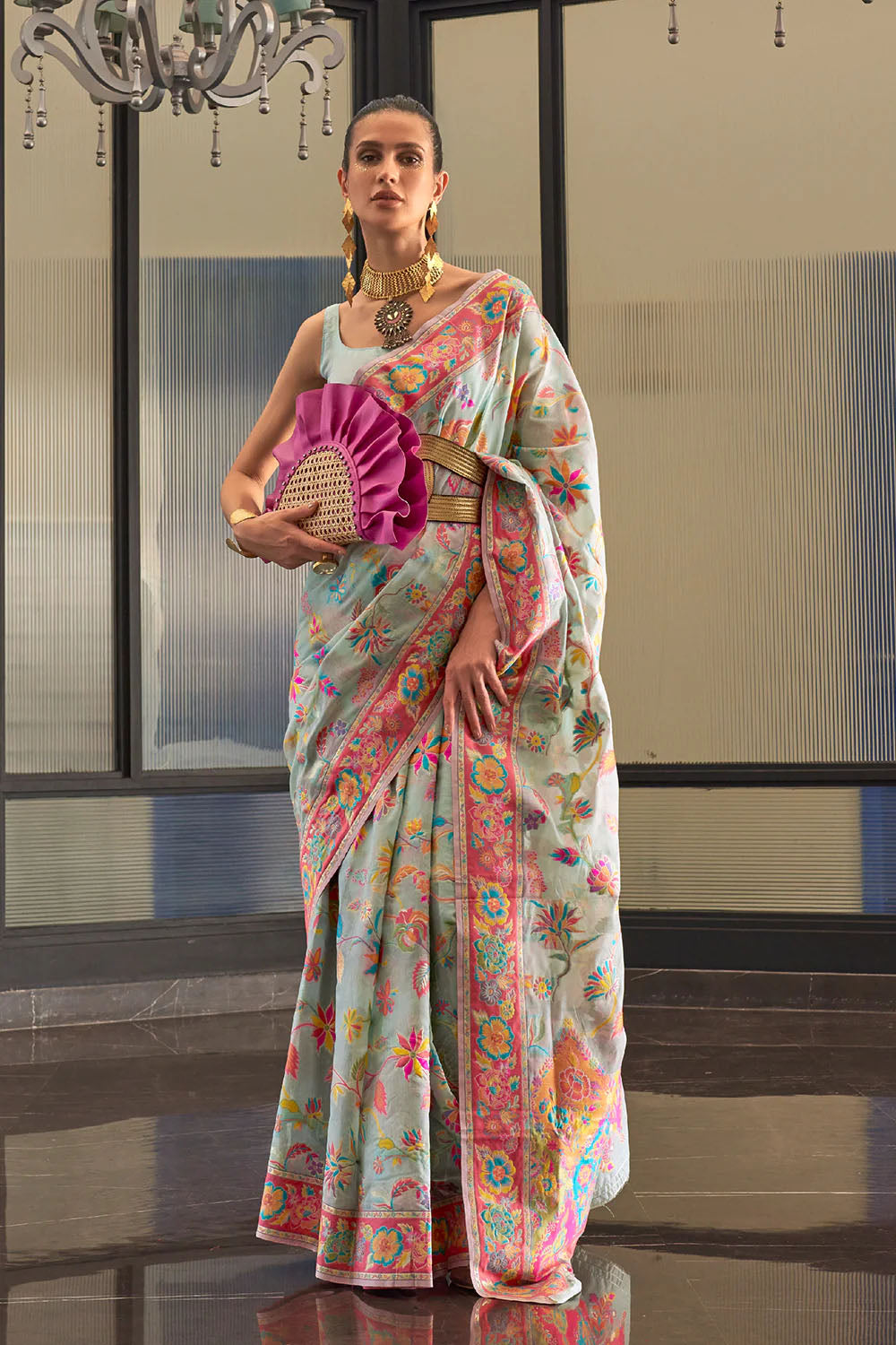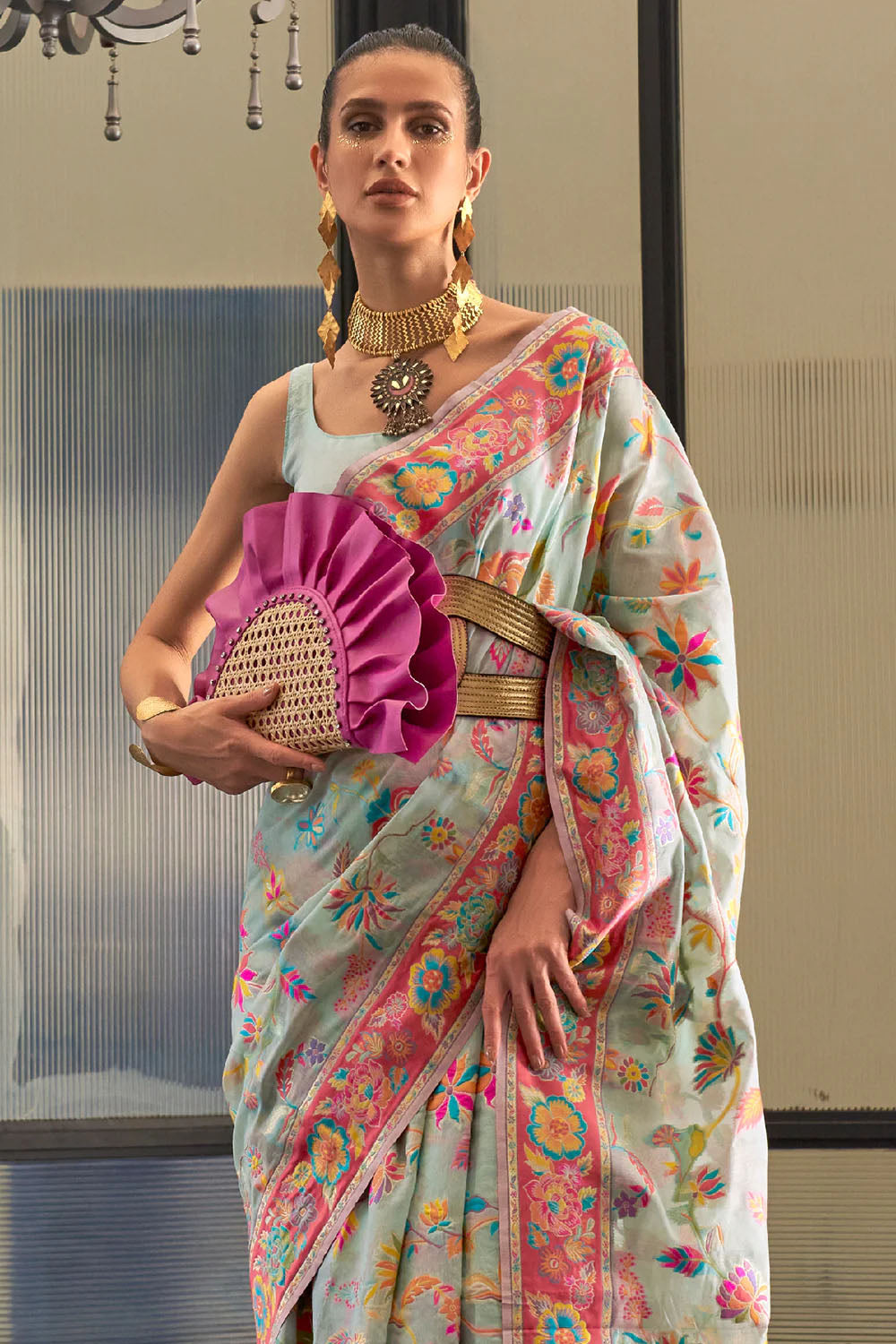 Powder Blue Modal Silk Kashmiri Weaving Saree