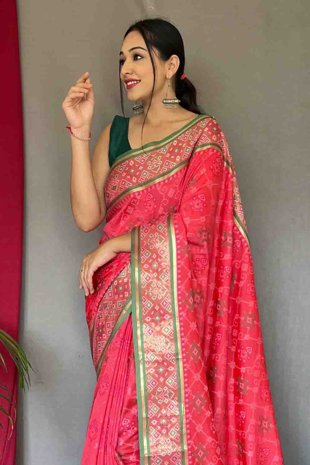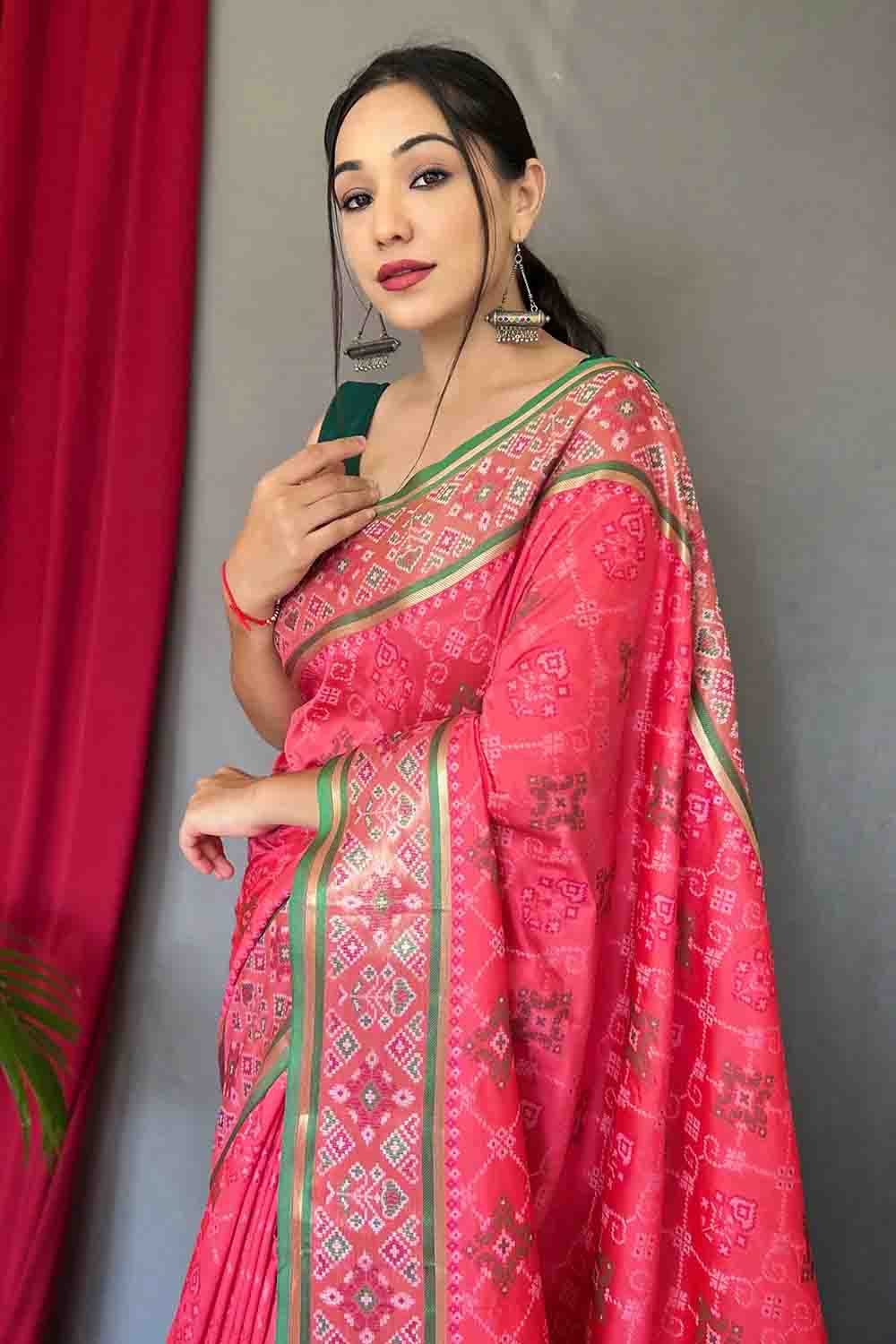 Rose Red Patola Silk Zari Weaving Saree