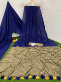 Royal Blue & Brown  Handloom Cotton Saree