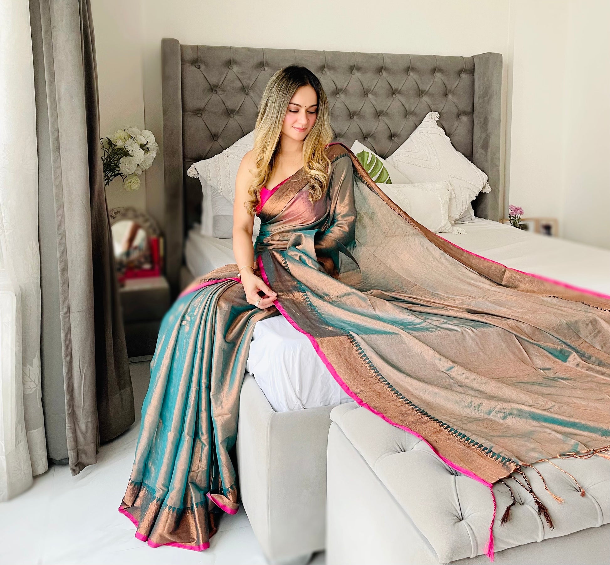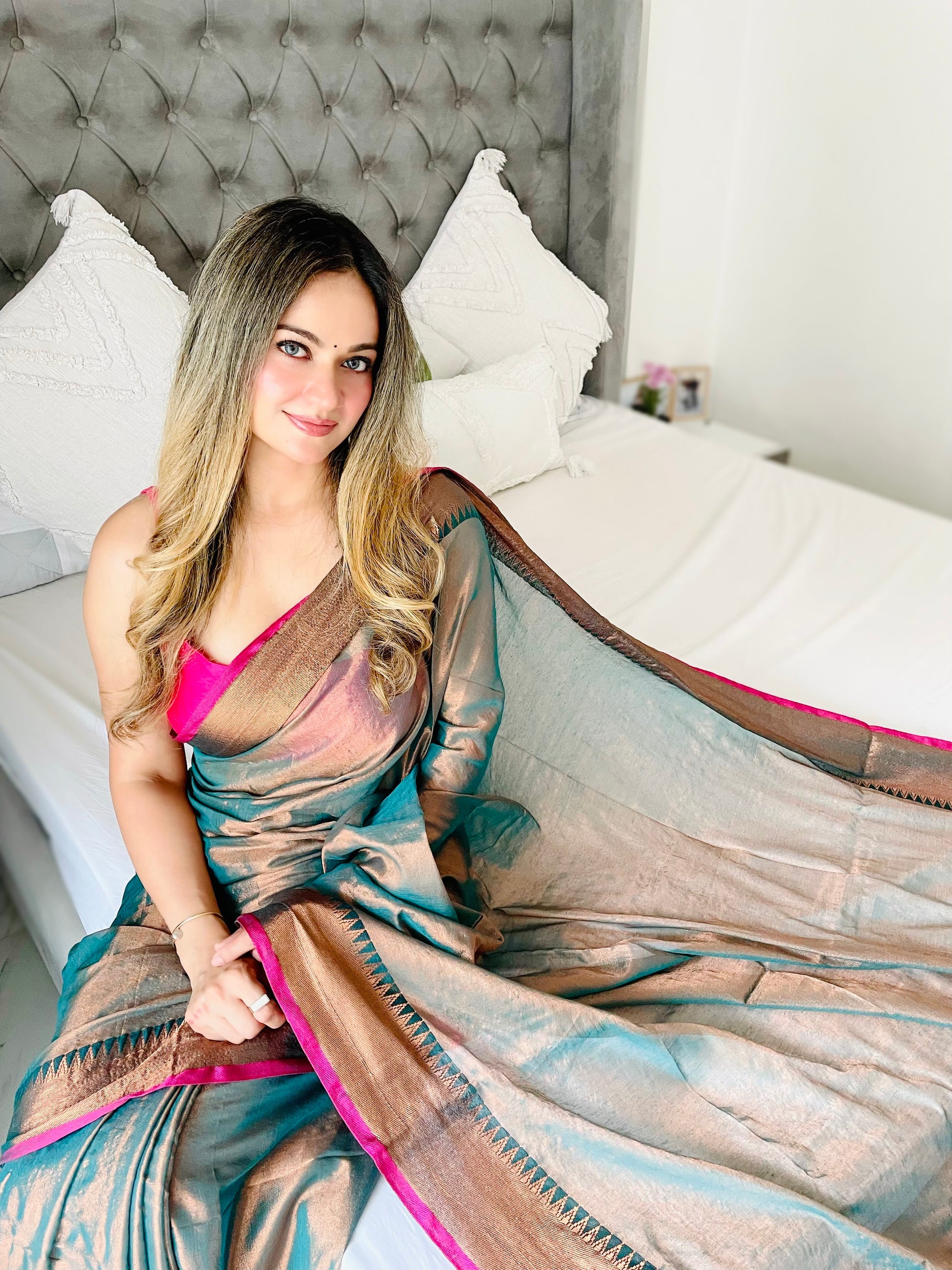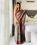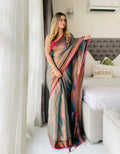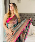Shaaola Rama Green Handloom Tissue Saree