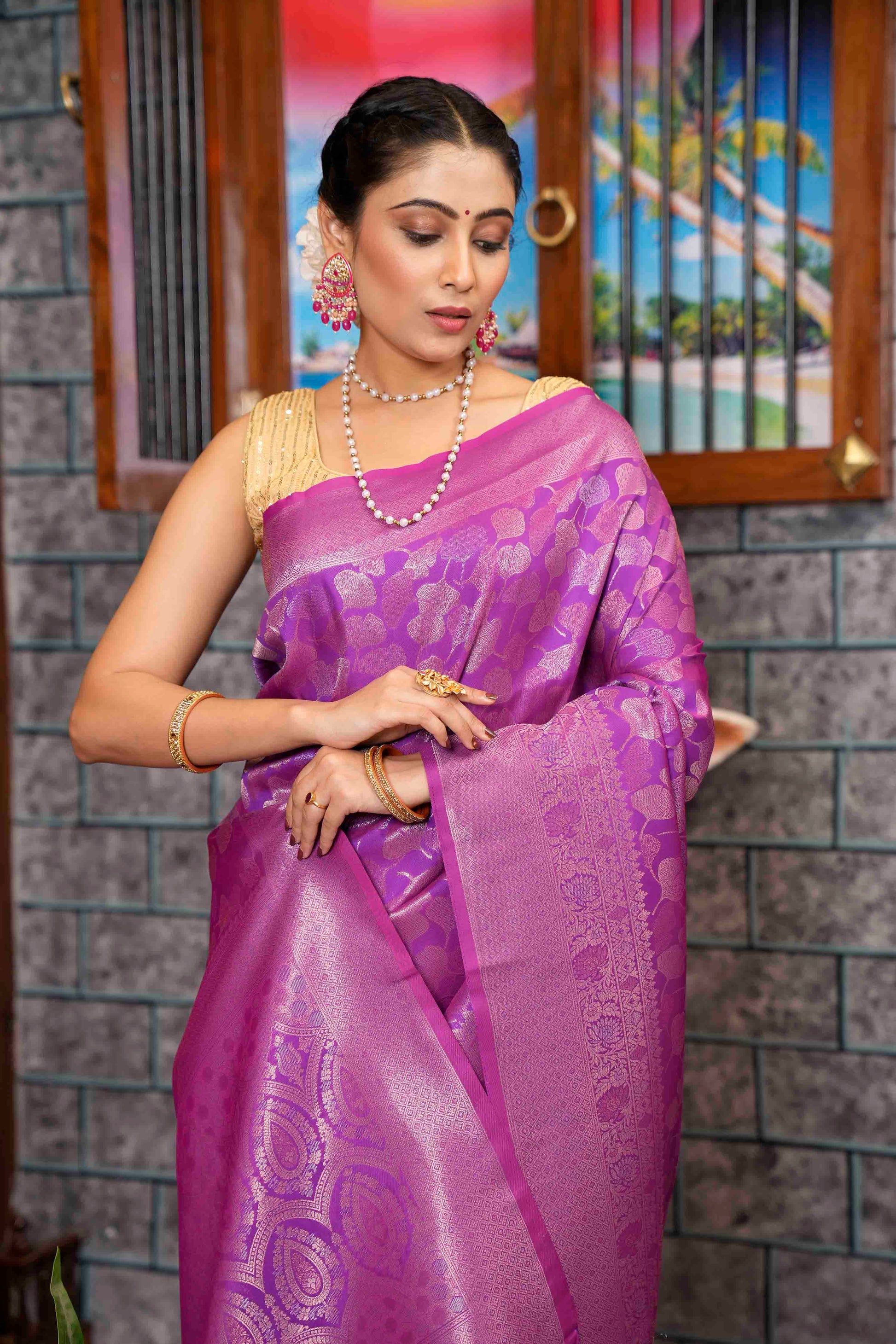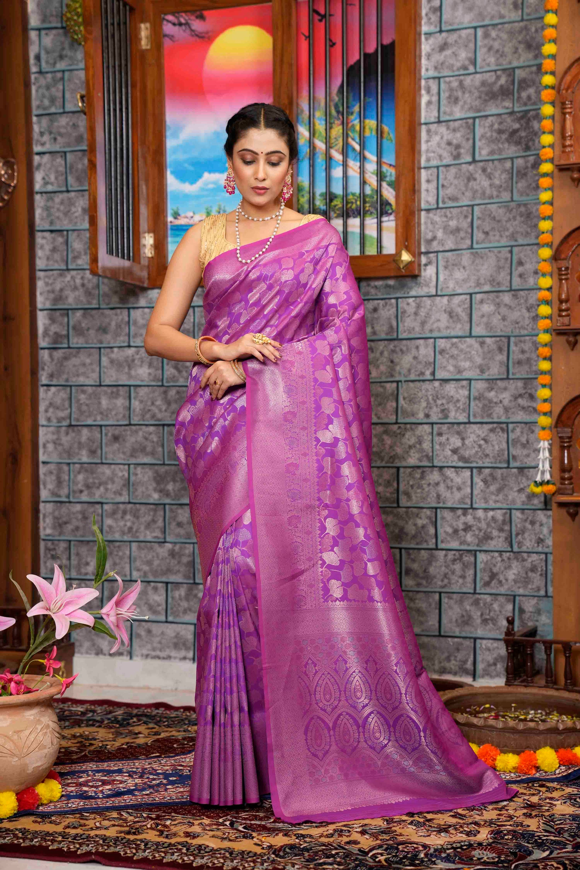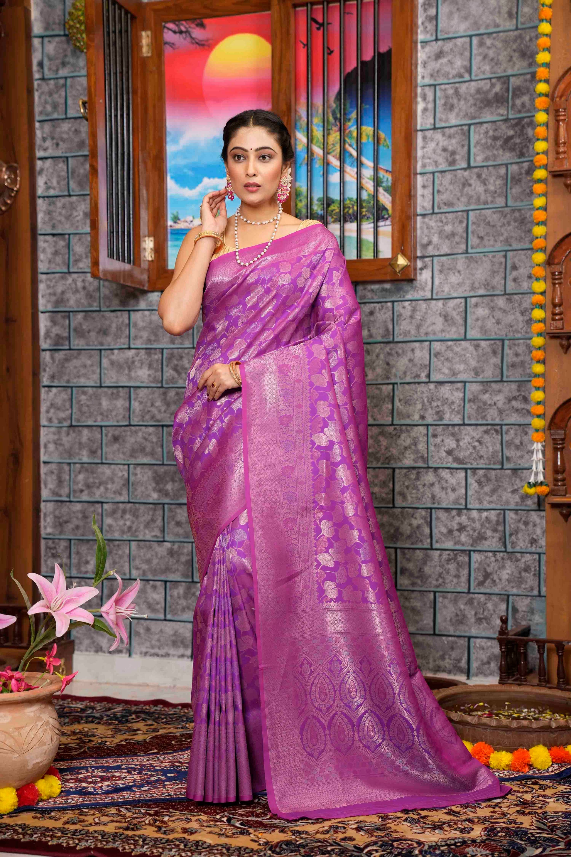 Wine Purple Woven Kanjivaram Silk Saree
